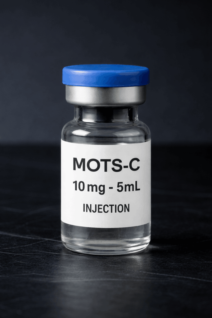 MOTS-C 10mg – 5mL injection is a peptide-based formulation containing MOTS-C, a mitochondrial-derived peptide known for its role in regulating metabolism and cellular energy balance. This compound is naturally produced within the body and is closely linked to mitochondrial function, which is essential for overall health, energy production, and metabolic efficiency.